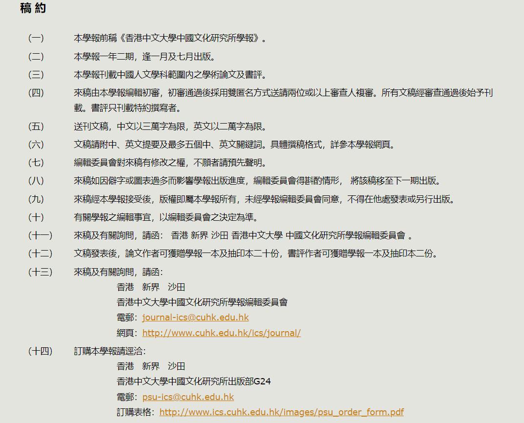 【征稿启事】香港中文大学《中国文化研究所学报》
