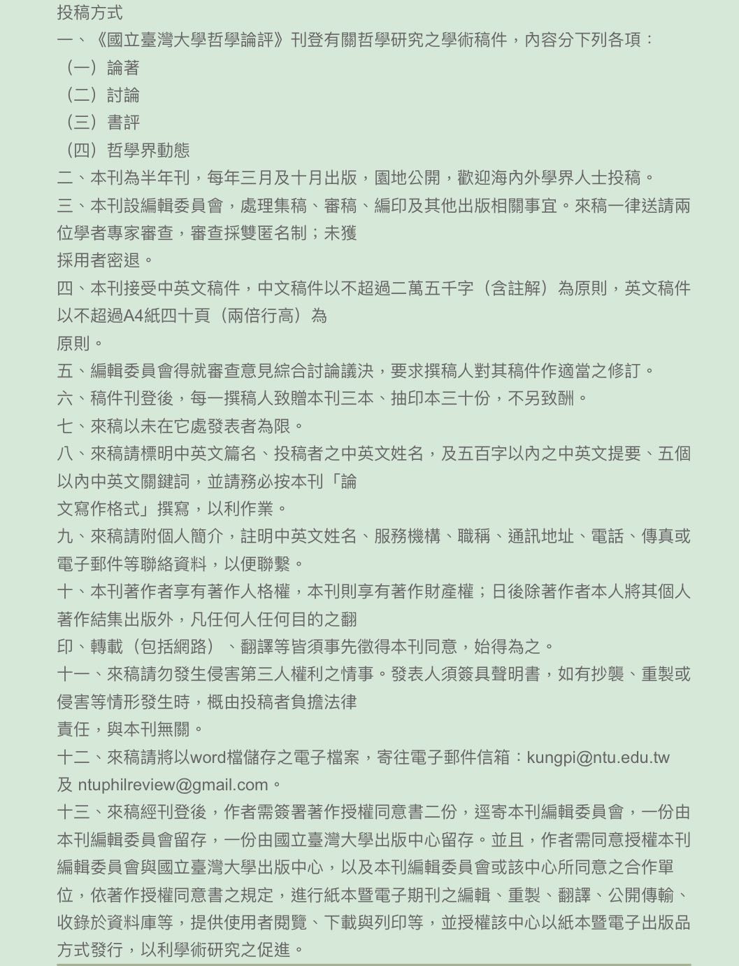 【征稿启事】台湾大学《国立台湾大学哲学评论》