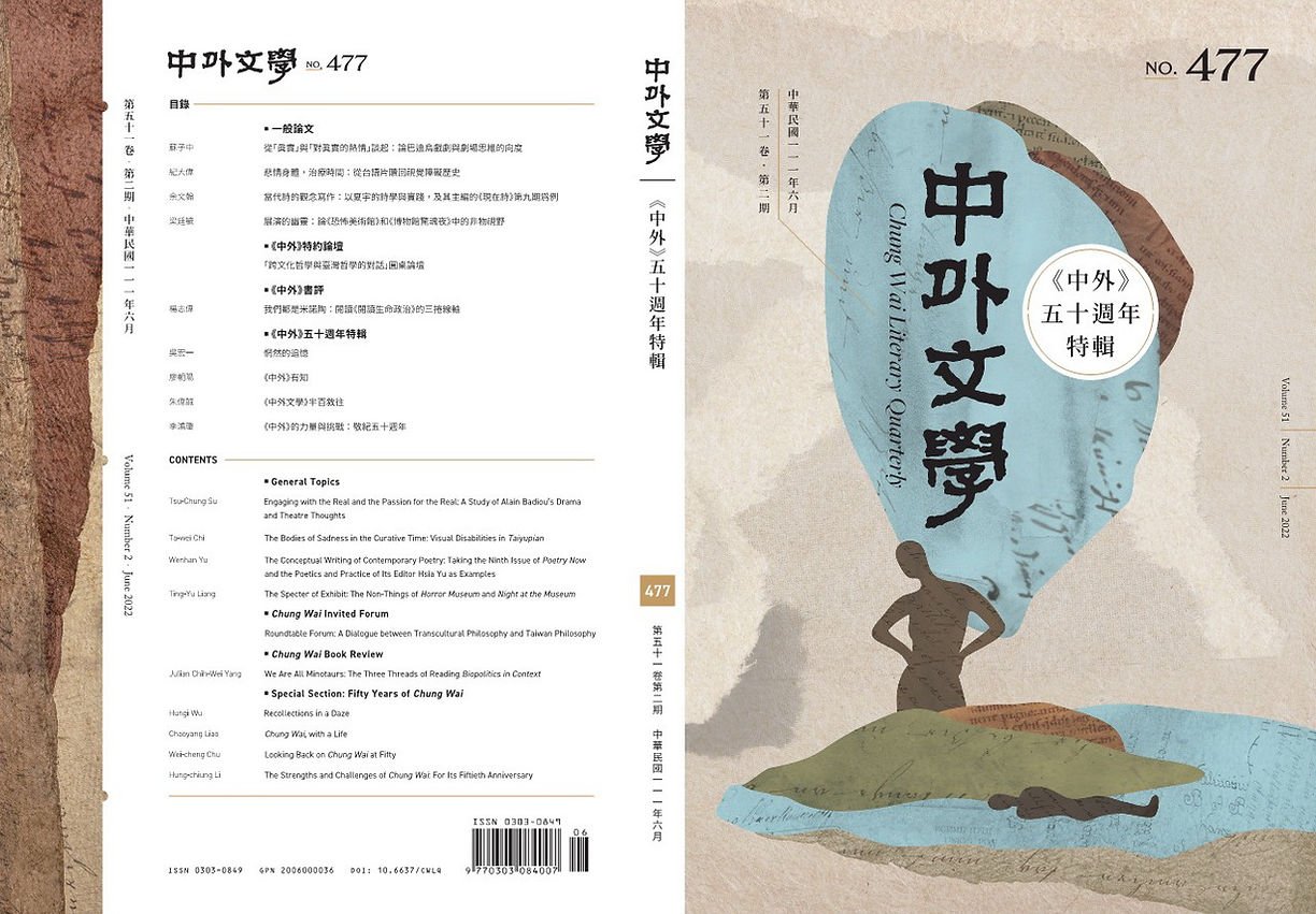《中外文学》由台湾大学外国语文学系出版,为一具双匿名审查制度之中文学术季刊,主要刊登具有批判与当代研究取径的华文与外文文学研究、文化研究与理论研究相关之学术论文。以下为下载网址: